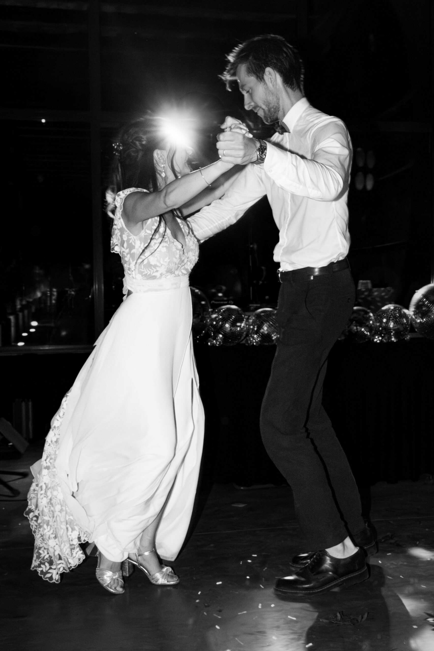 L’entrée des mariés au dîner a littéralement lancé la fête. Dès les premières secondes, toute la salle s’est levée pour danser. Une scène spectaculaire, vivante, pleine de bonnes ondes, orchestrée par la très forte DJette Zita aux manettes.