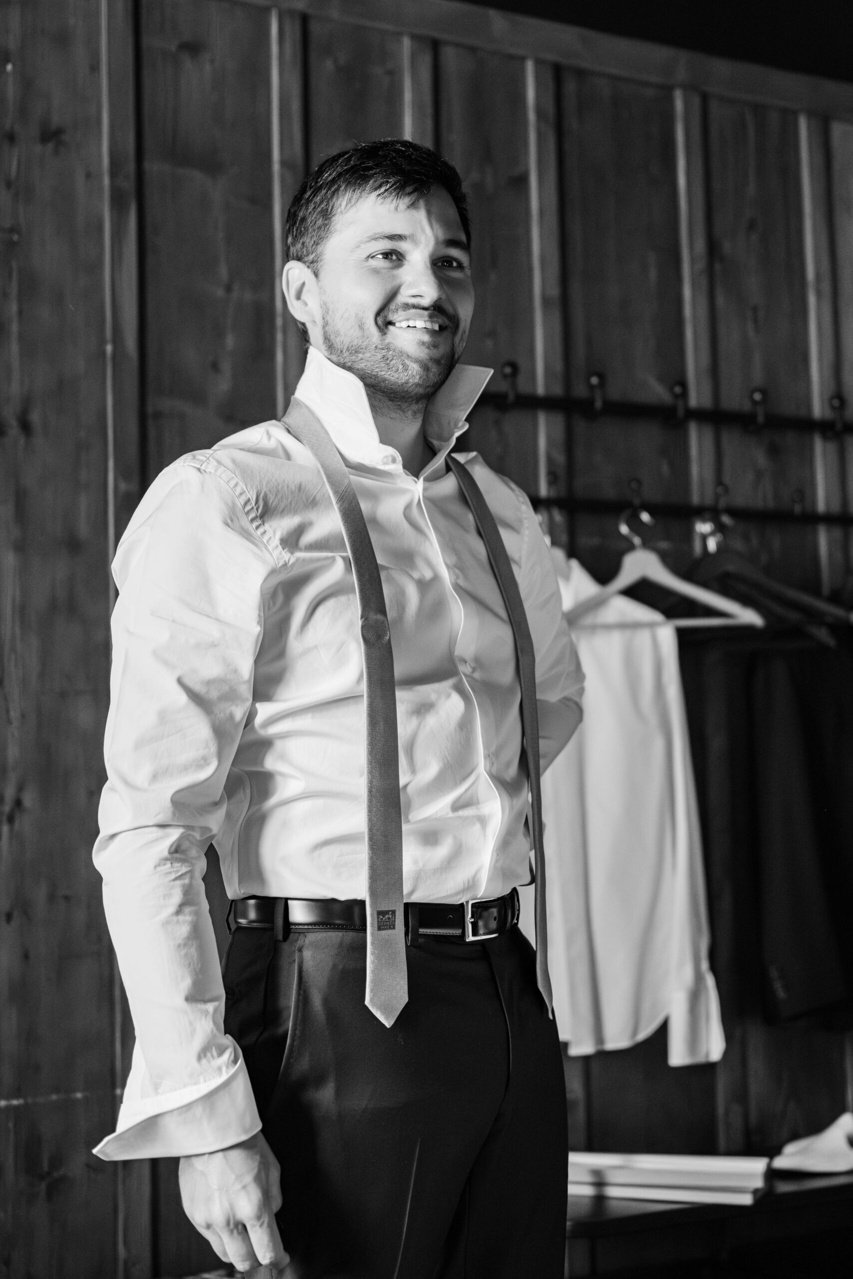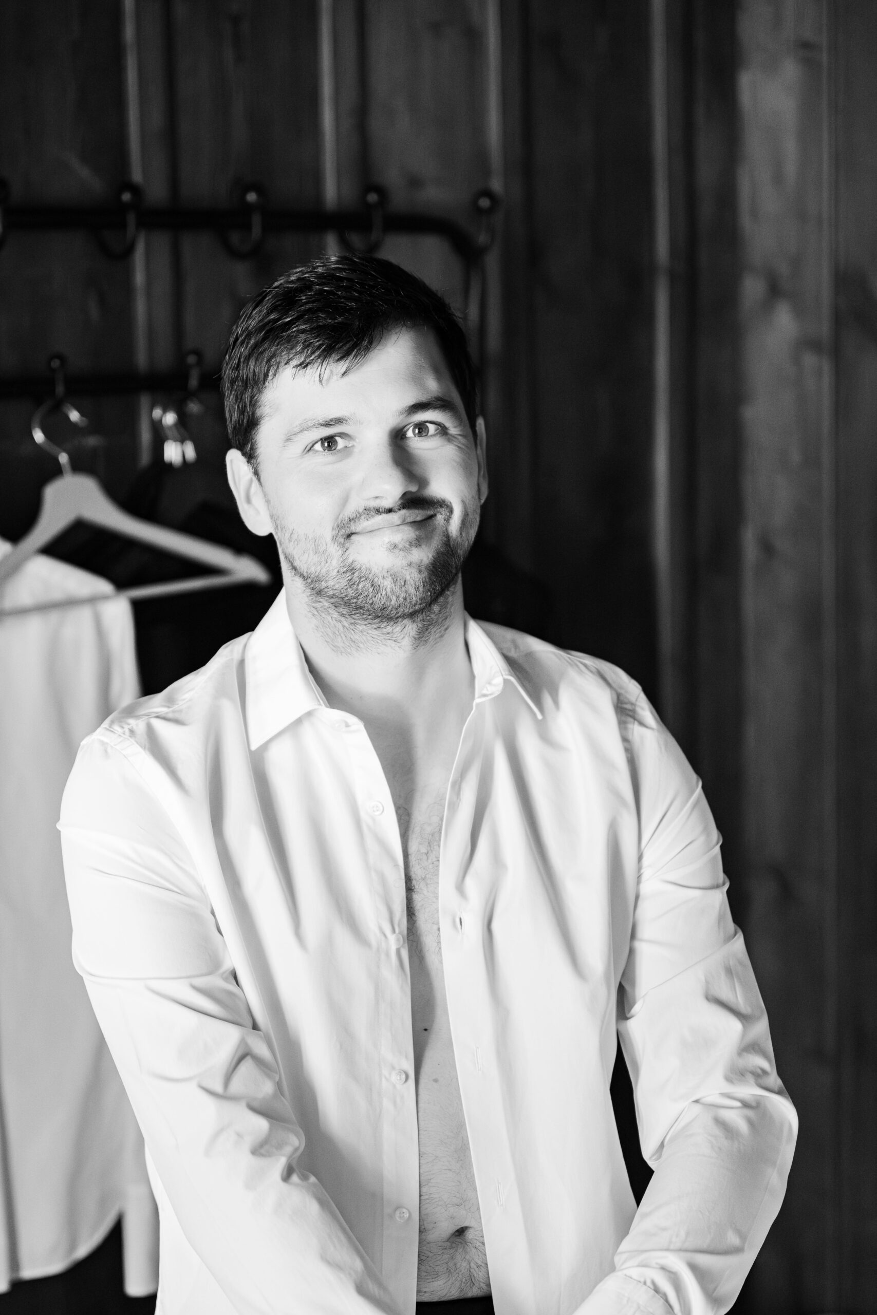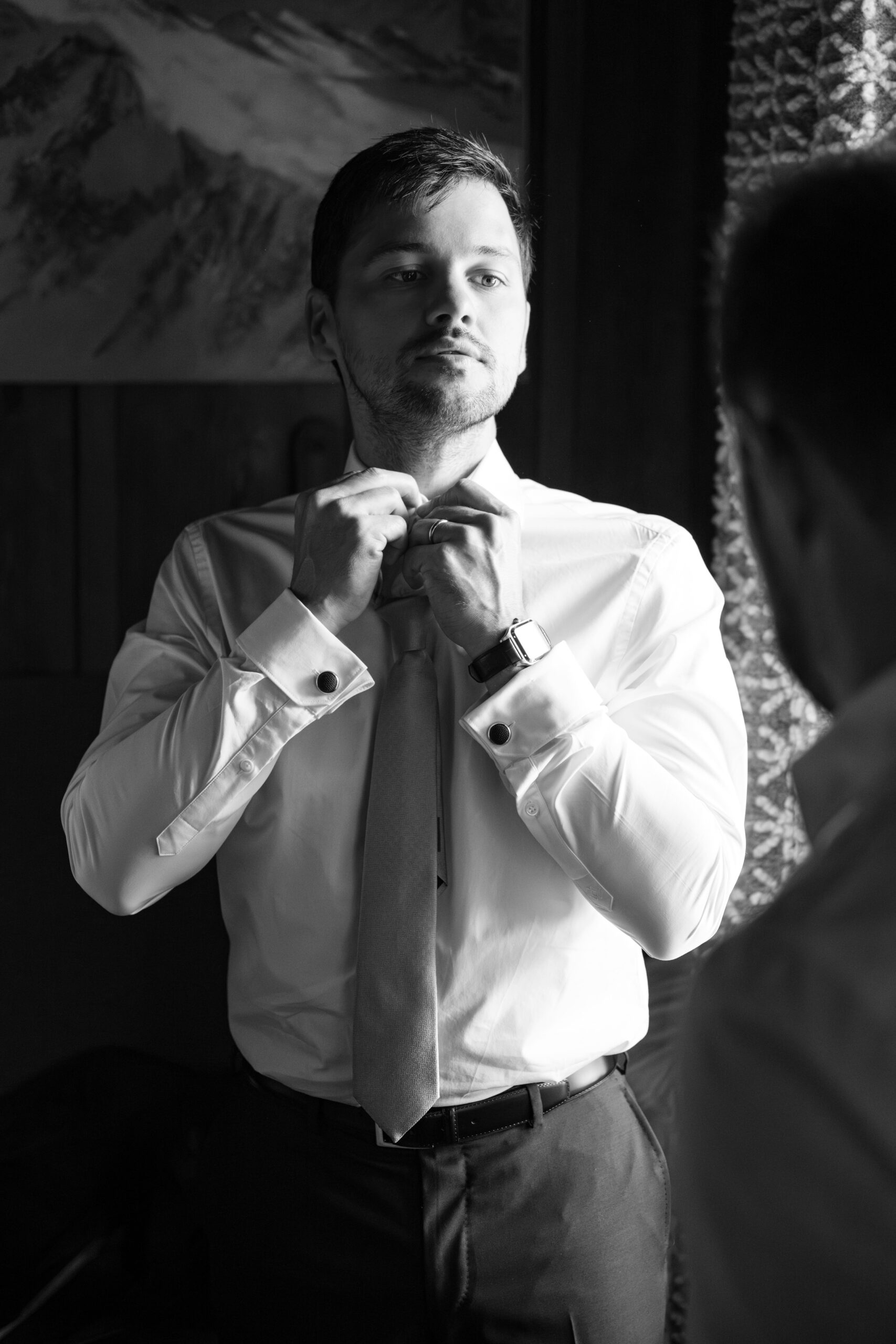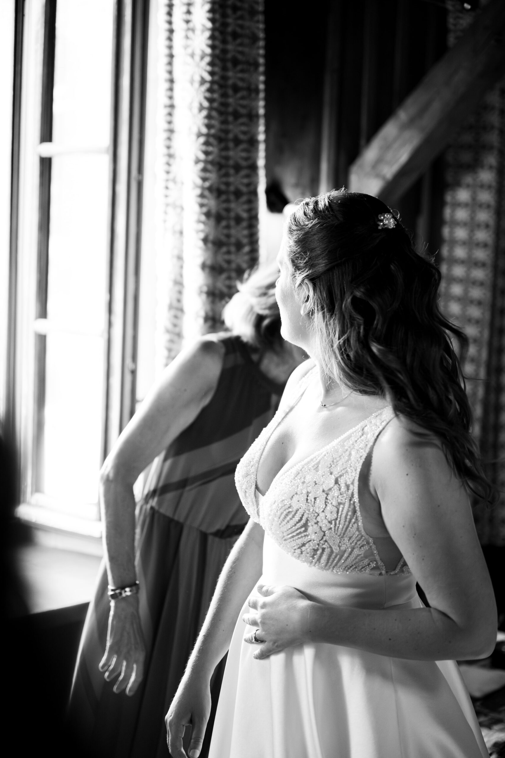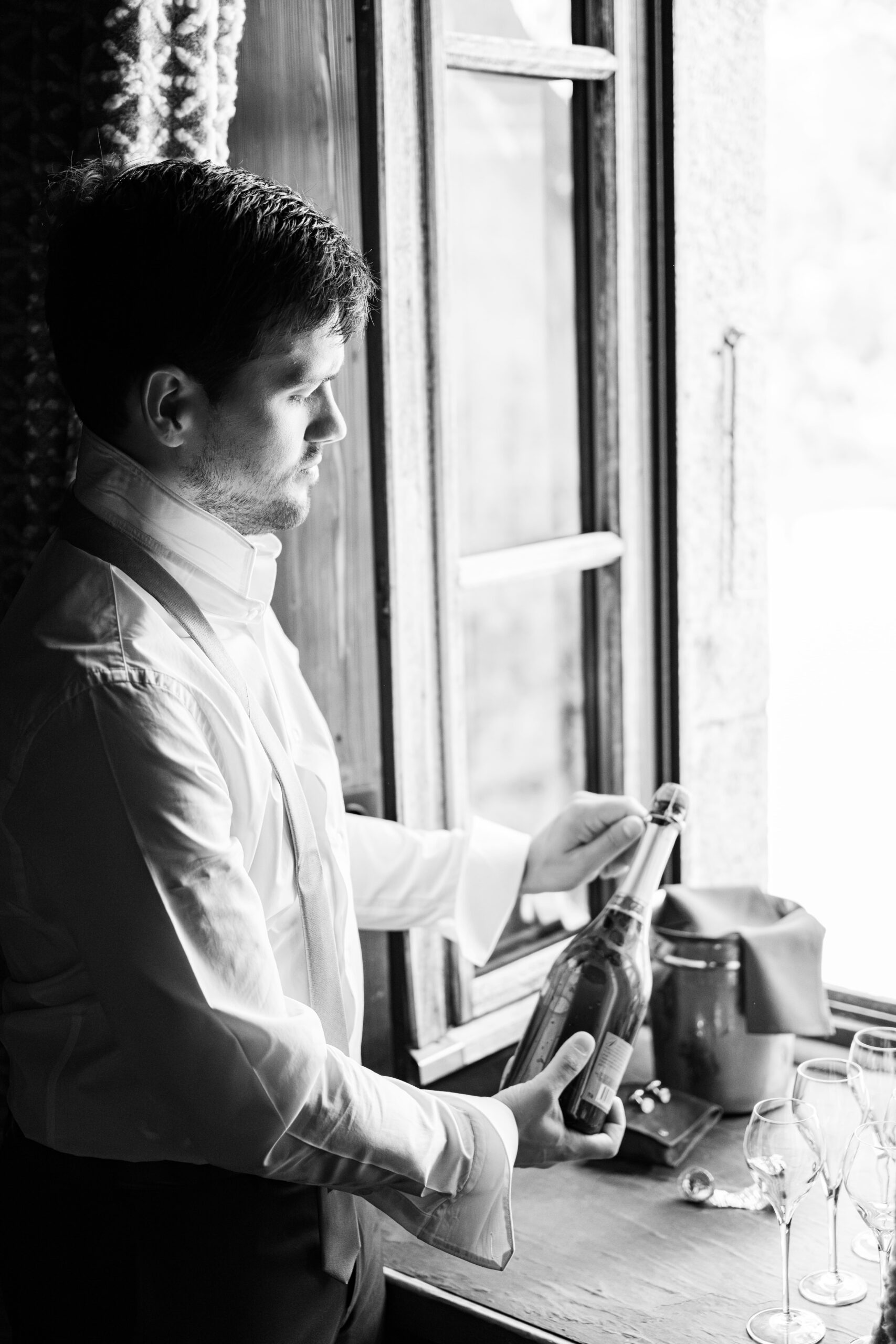 Les préparatifs en montagne ont une saveur particulière : lumière franche, matières brutes, bois chaleureux, sommets en toile de fond. En tant que photographe de mariage à Chamonix, mon rôle est de capter cette énergie collective, ces instants de complicité et d’anticipation avant la cérémonie. Ce sont souvent ces moments spontanés qui racontent le mieux l’histoire du couple.