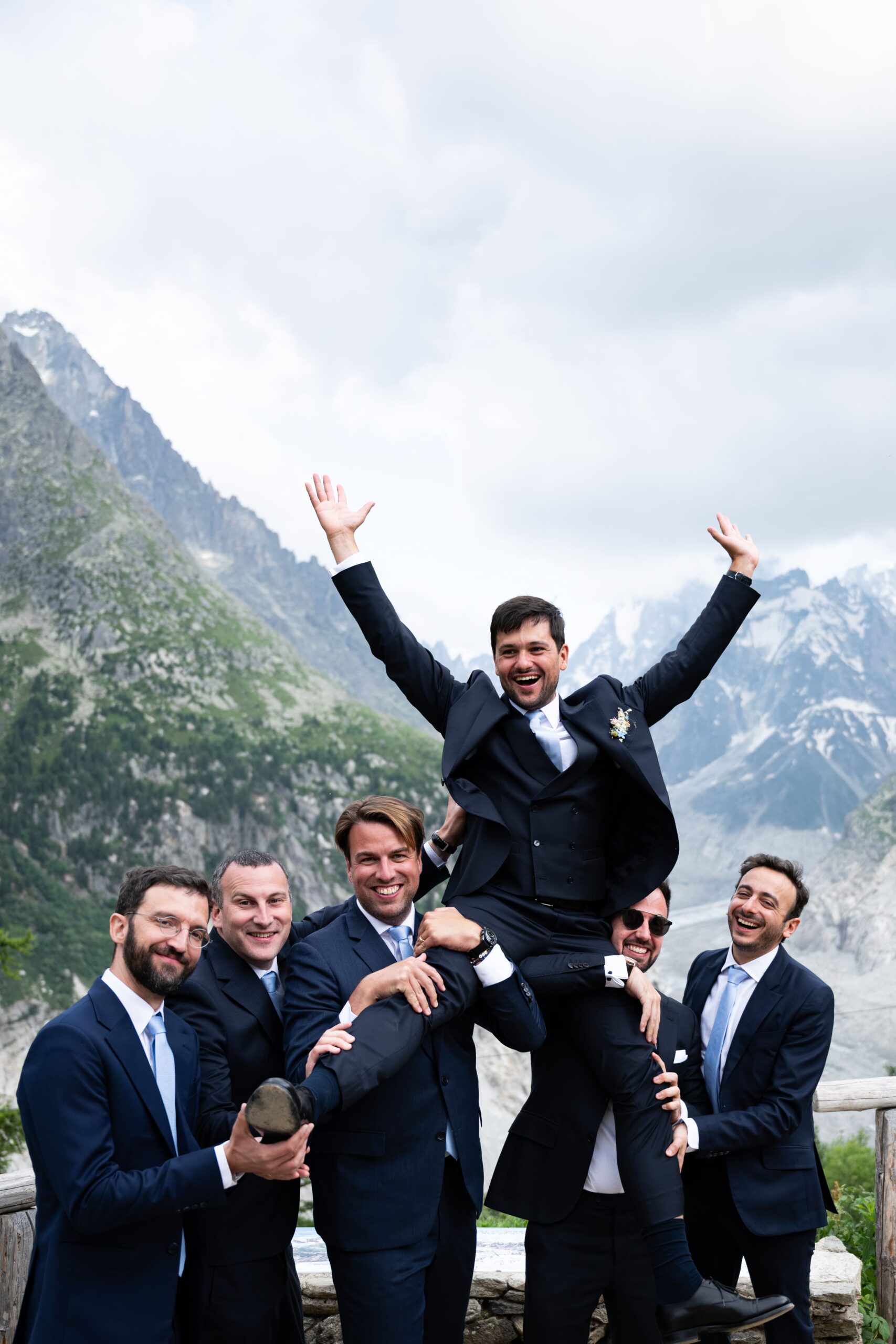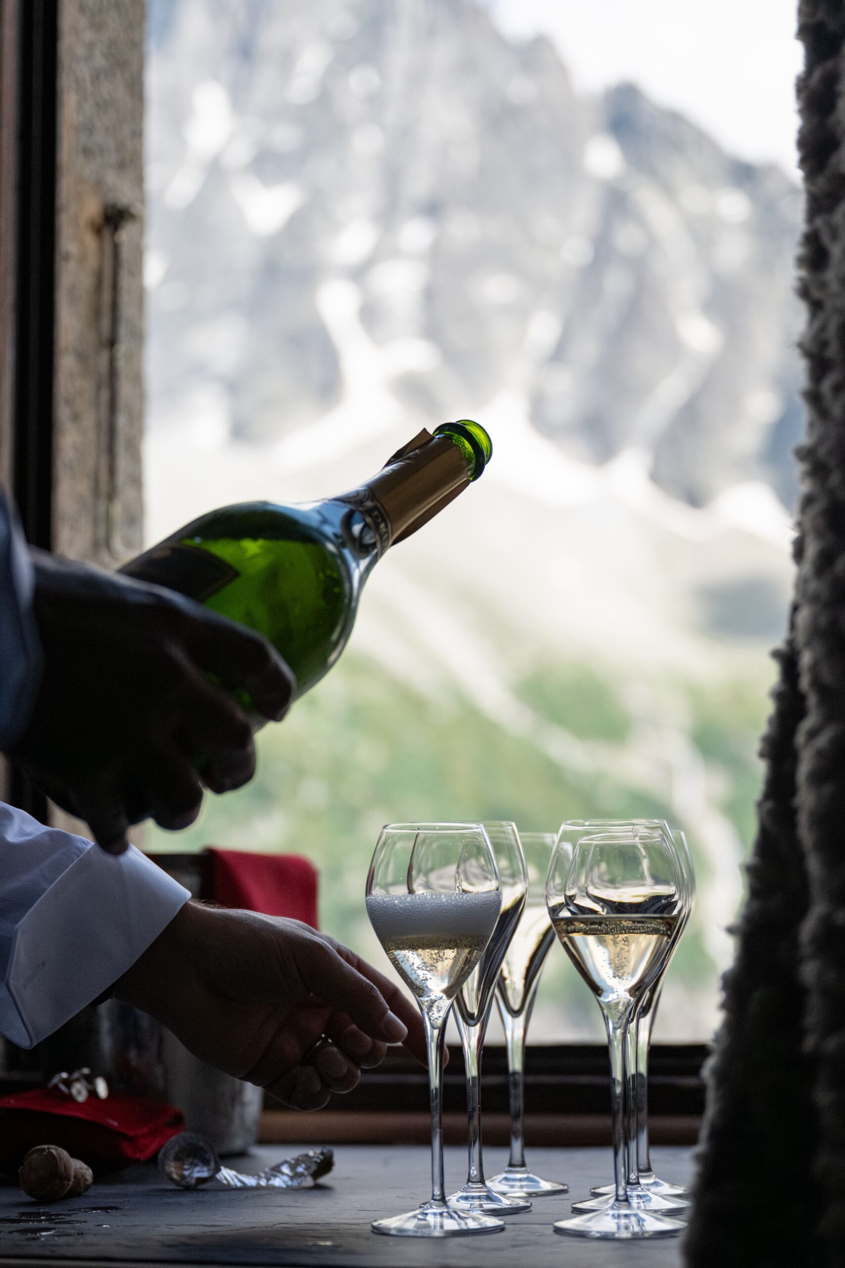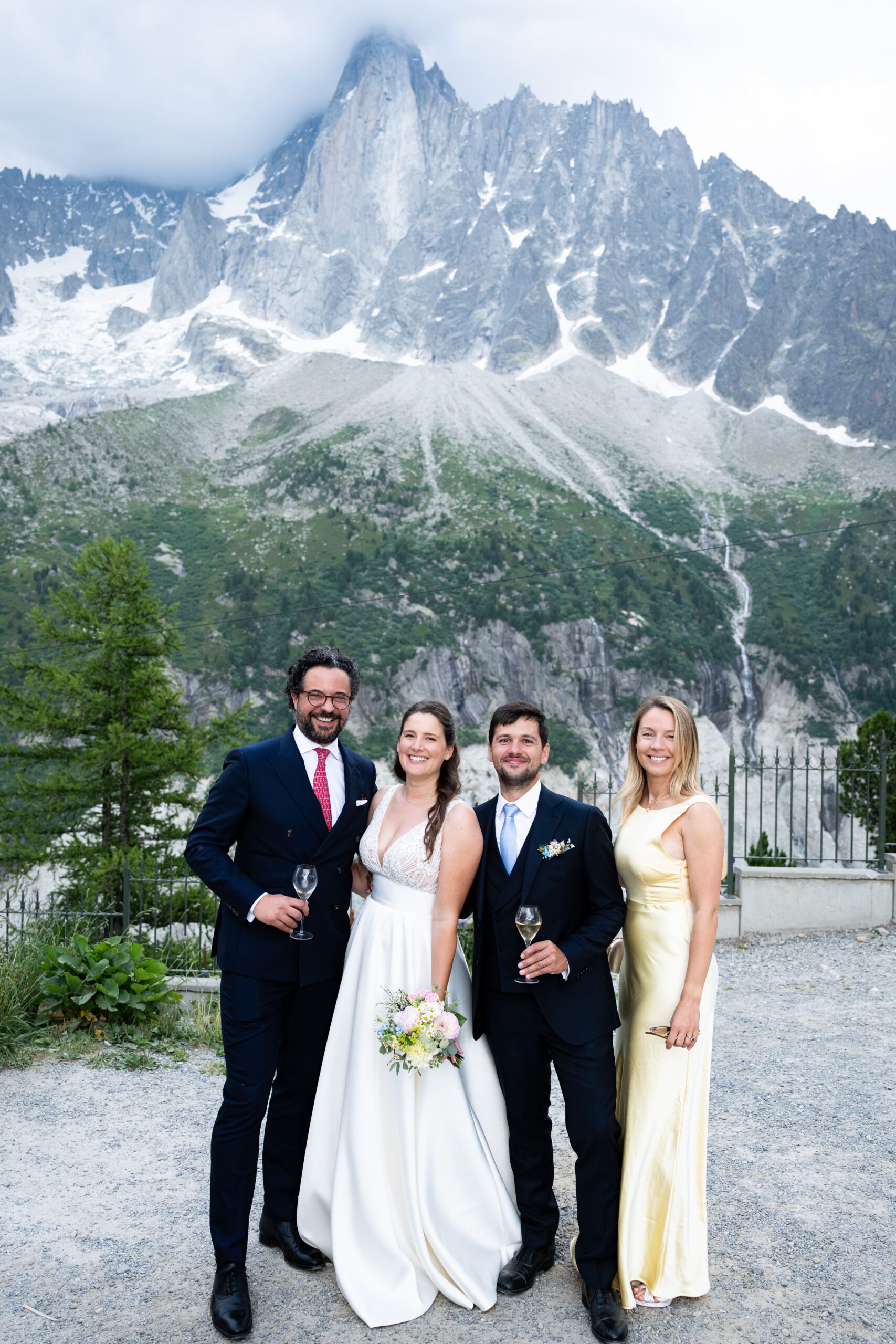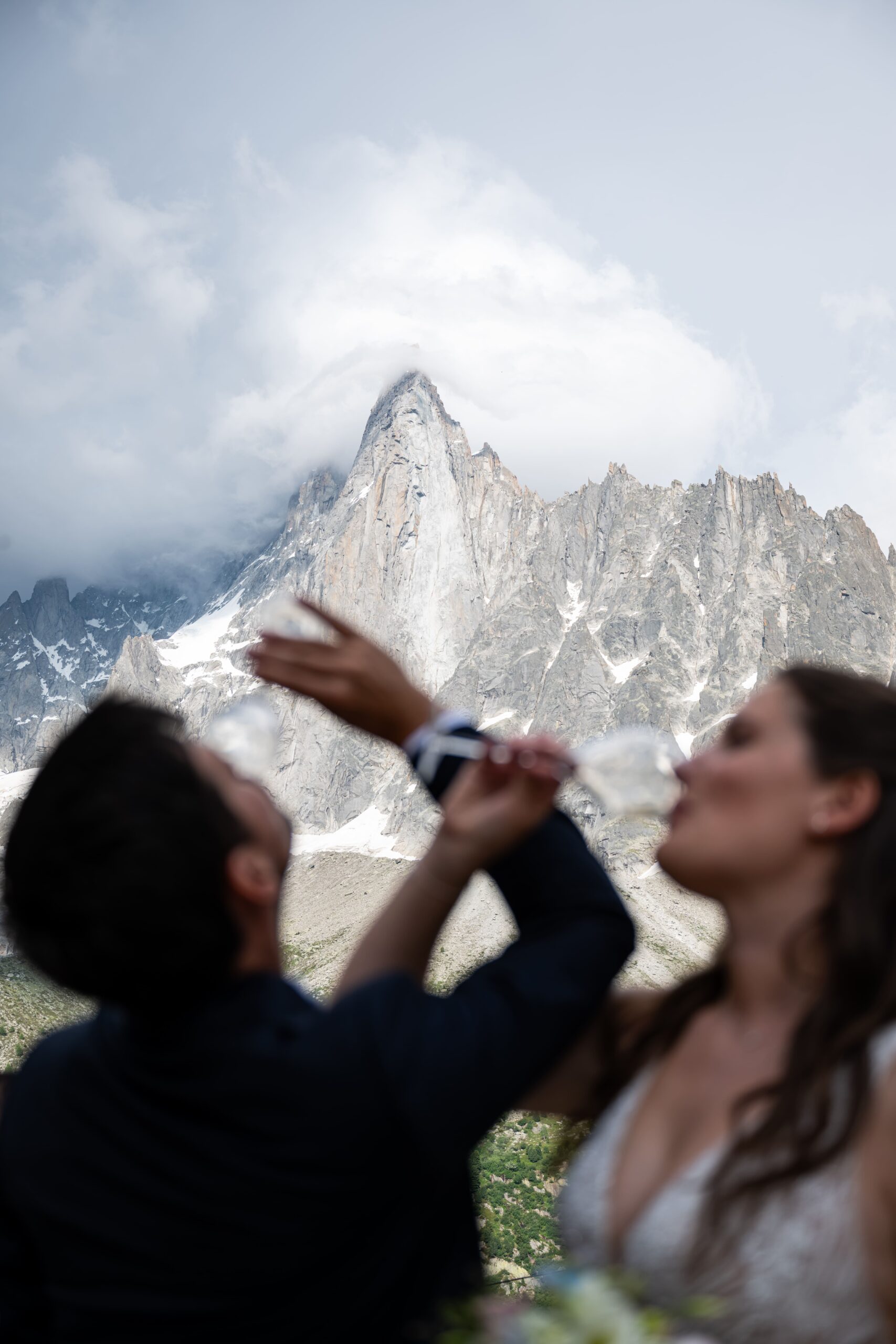 Après la cérémonie, les invités ont profité d’un cocktail exceptionnel sur la terrasse de l’hôtel, face à la Mer de Glace et à la majestueuse Aiguille des Drus, offrant un spectacle naturel absolument saisissant.