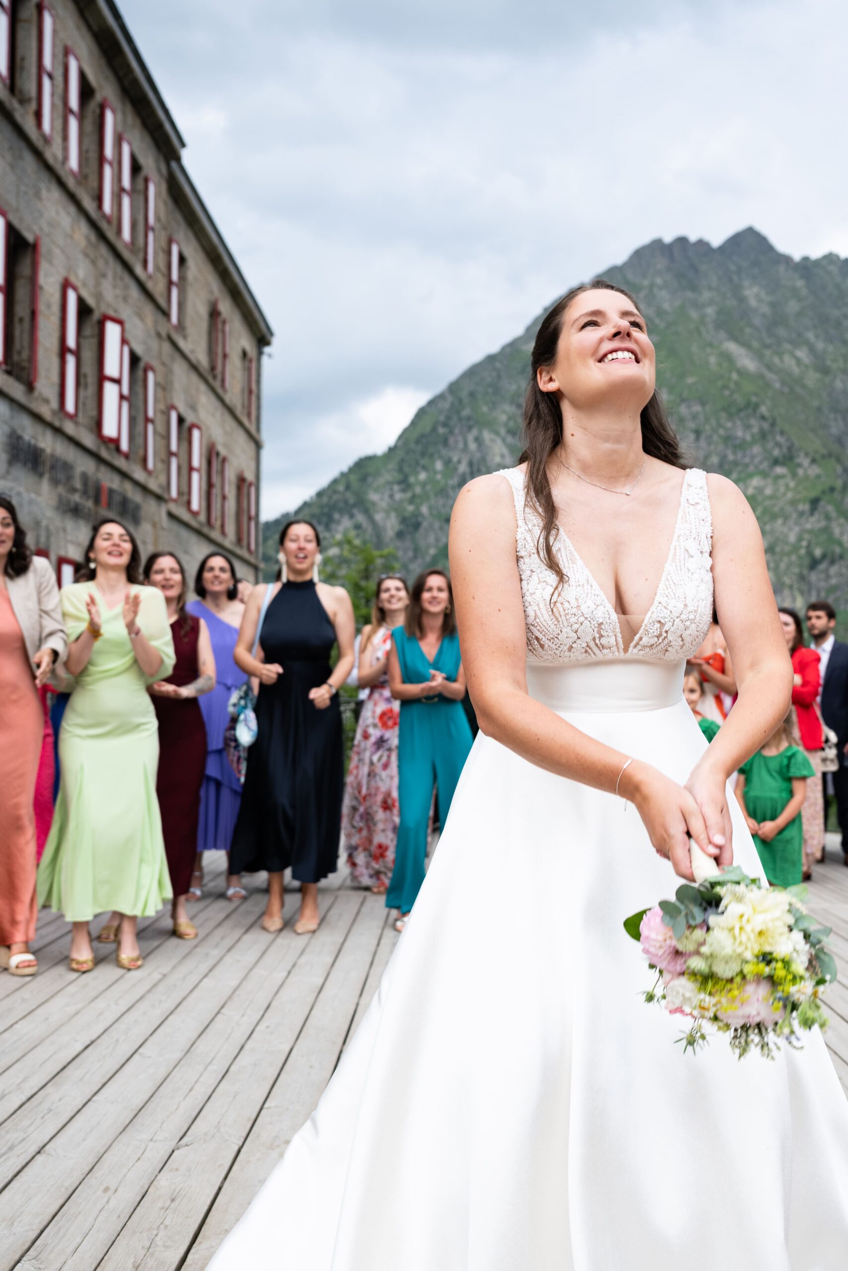 Pour un reportage photo de mariage en montagne, ces instants sont précieux : la lumière évolue vite, l’air devient plus frais, les échanges se font plus intenses. C’est là que naissent des images fortes, élégantes et naturelles.